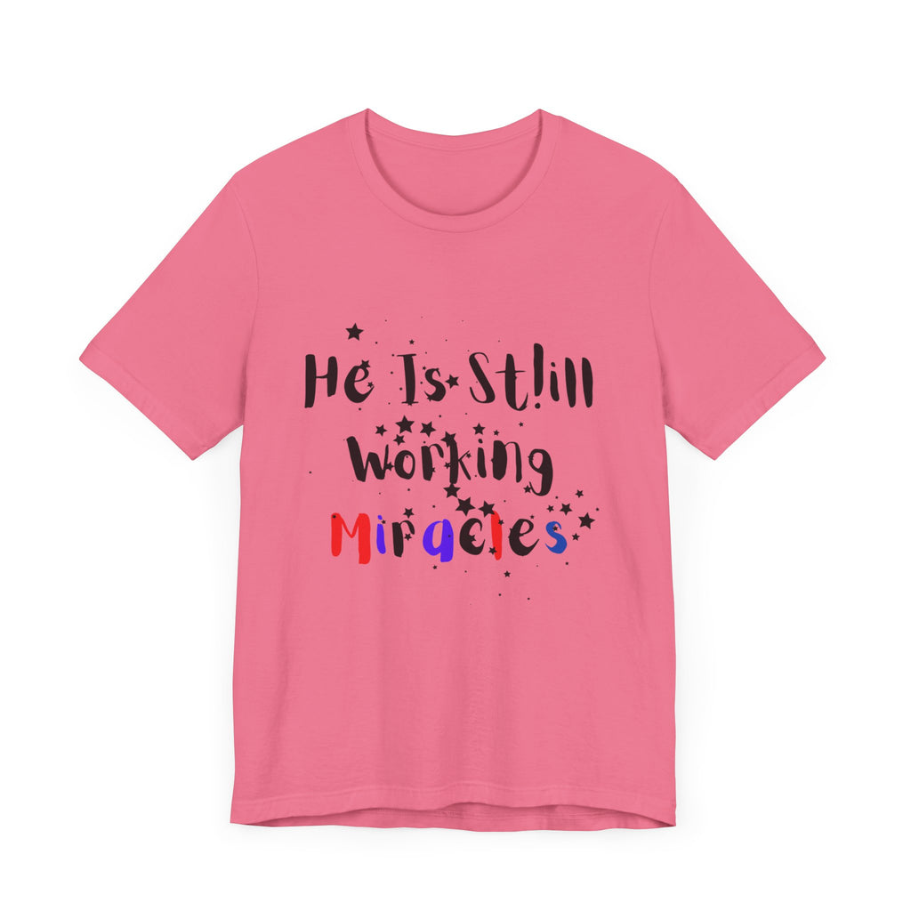 - A great reminder that Miracles are still possible. This beautiful T-Shirt in vibrant colors, will enlighten your day and speak to those who see the message you carry.
