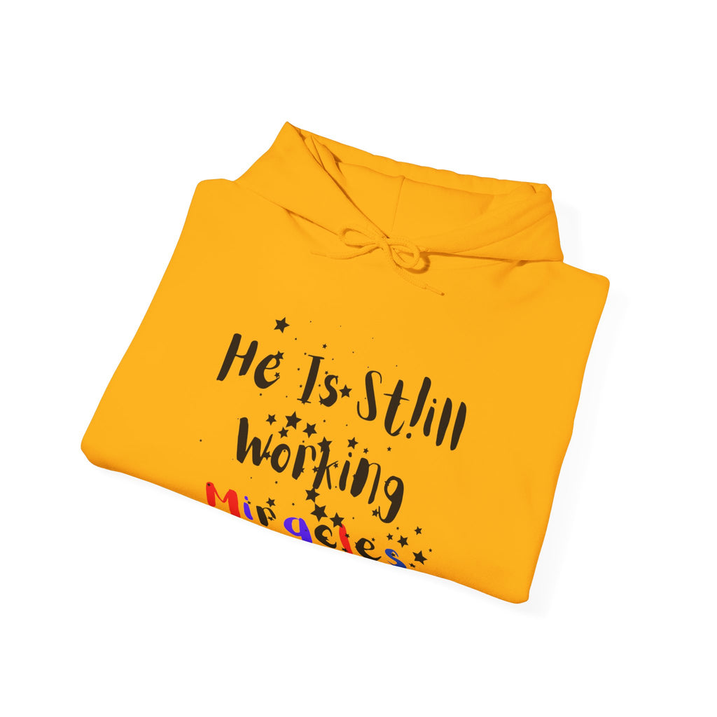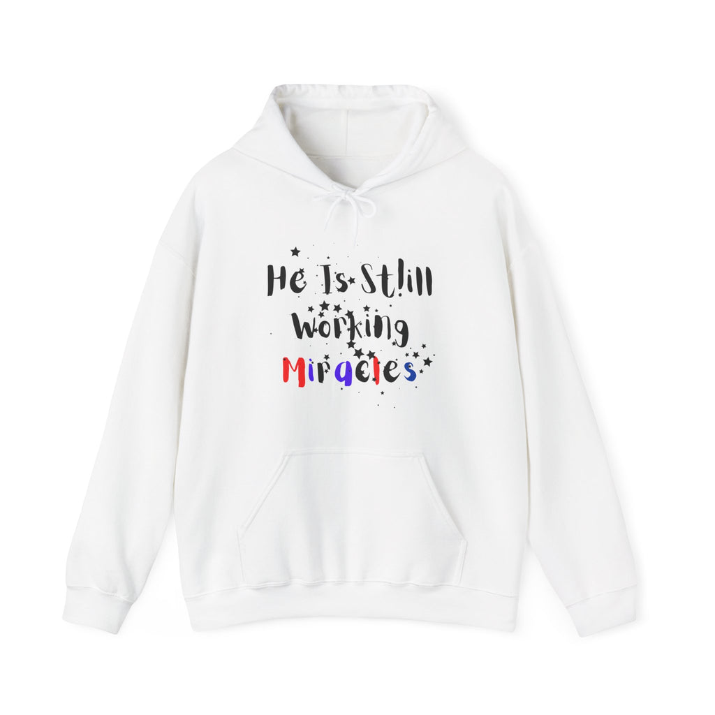 This cozy Hoodie features the inspiring phrase 'he is still working miracles,' creating a positive and uplifting vibe. Perfect for those who appreciate faith-based messages or need a reminder of hope in their lives. Ideal for wearing during casual outings, lounging at home, or as a thoughtful gift for religious holidays or as a pick-me-up gift for someone going through a tough time.
