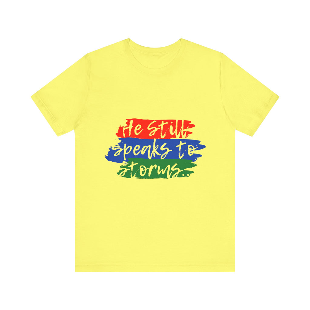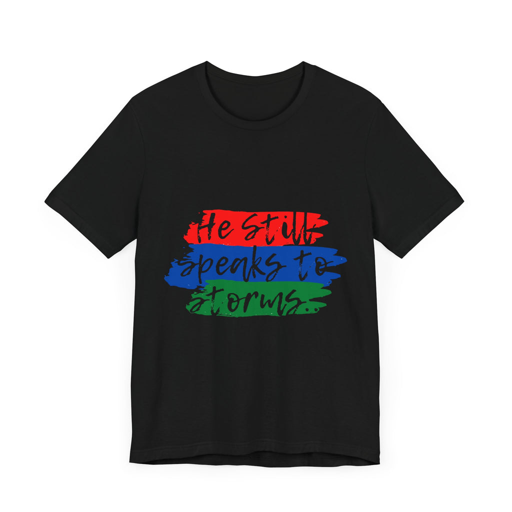 This well-designed short sleeve Tee features vibrant colors that add a touch of sophistication. It's a great choice for cooler days or for a stylish look on a night out. With a subtle reminder that even in the midst of storms, peace can be found through faith and trust, this sweatshirt truly stands out. It's also true to size and comes in a variety of colors, allowing you to express yourself in the color of your choice.